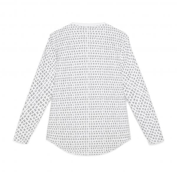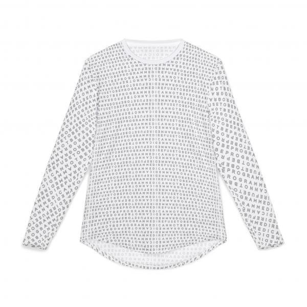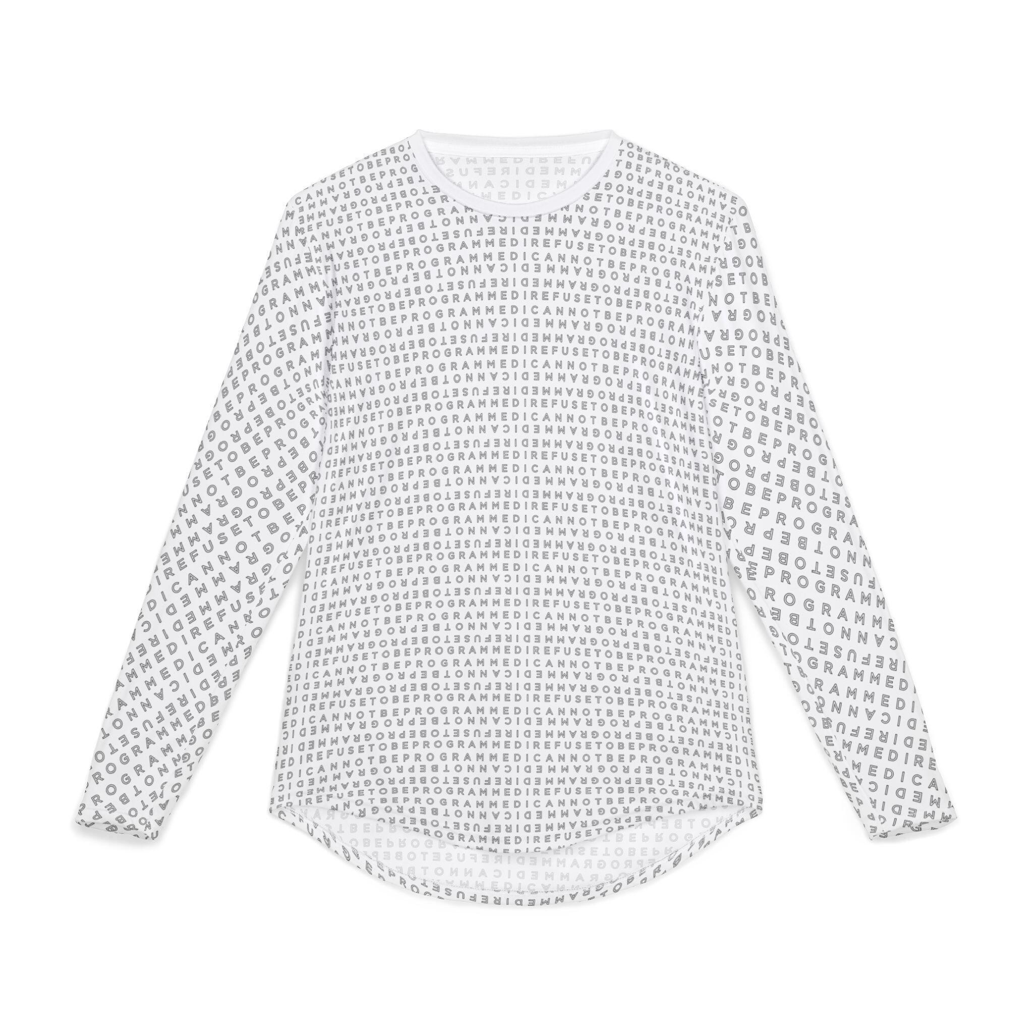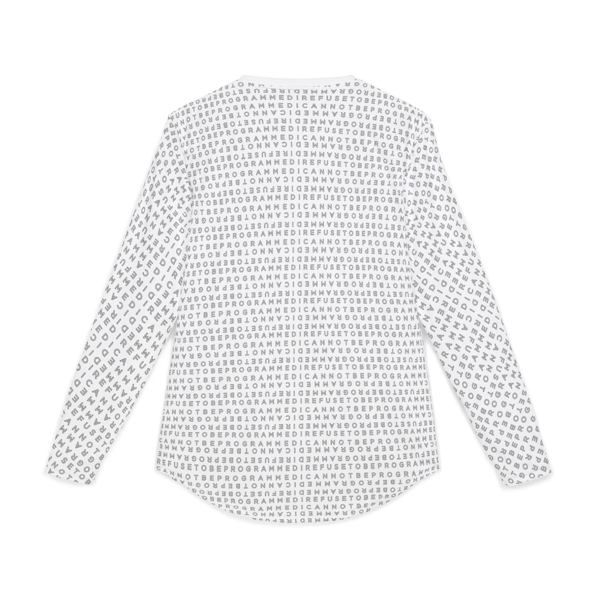 This Men’s I Refuse to be Programmed outline monogrammed long-sleeve shirt offers UV Protection, combines comfort and functionality and provides an athletic edge. Featuring a hemmed sleeve and shoulder tape for added durability, this shirt is ideal for outdoor activities or everyday wear, balancing style and performance in one sleek design.