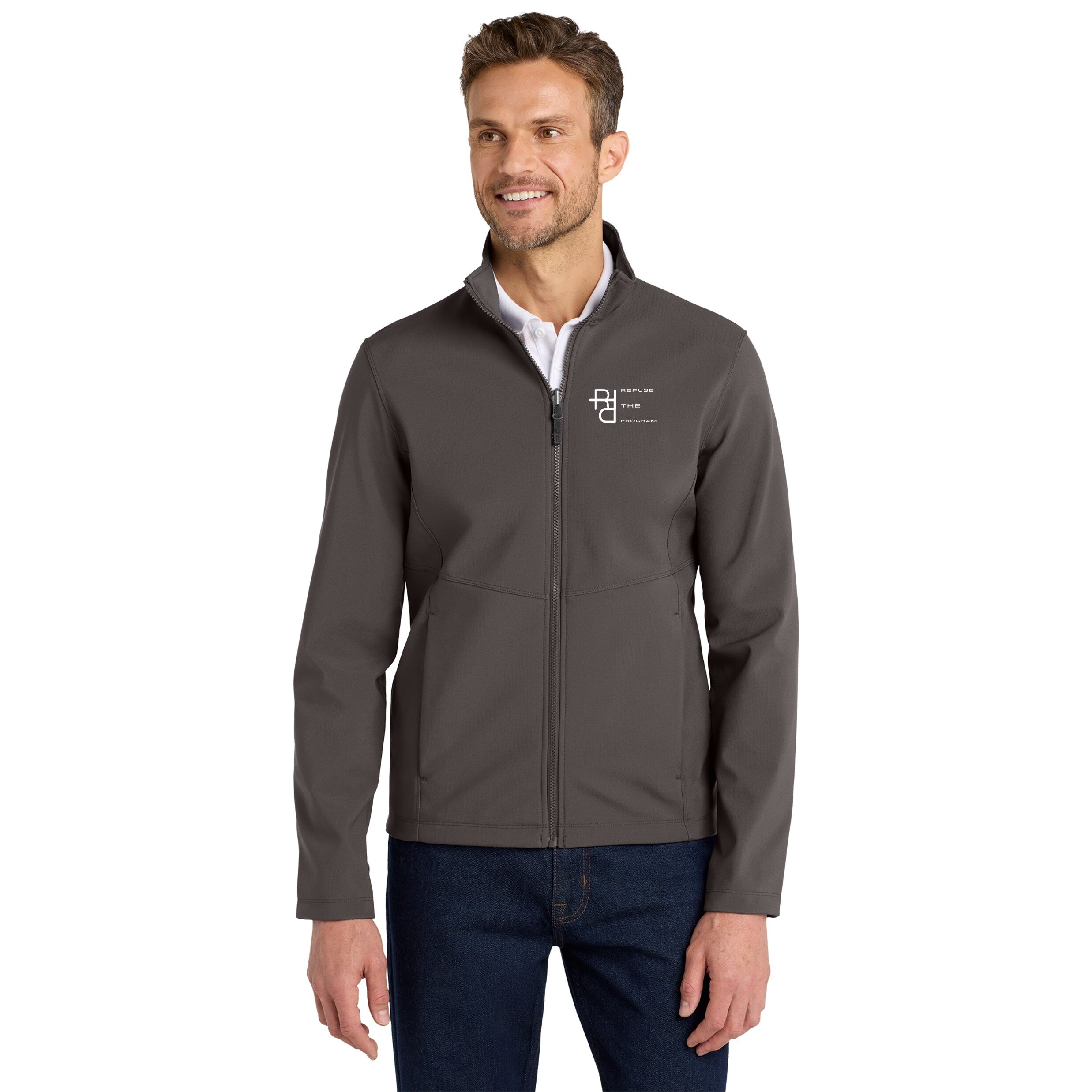 With a subtle mini ripstop texture, this stretch Soft Shell Refuse the Program RTP Logo Jacket has double-needle stitching throughout and sleek design lines. The water-resistant film resists wind and rain for weather protection and is useful for outdoor activities in cold weather.