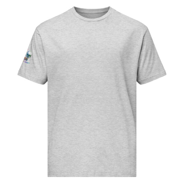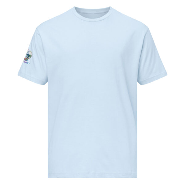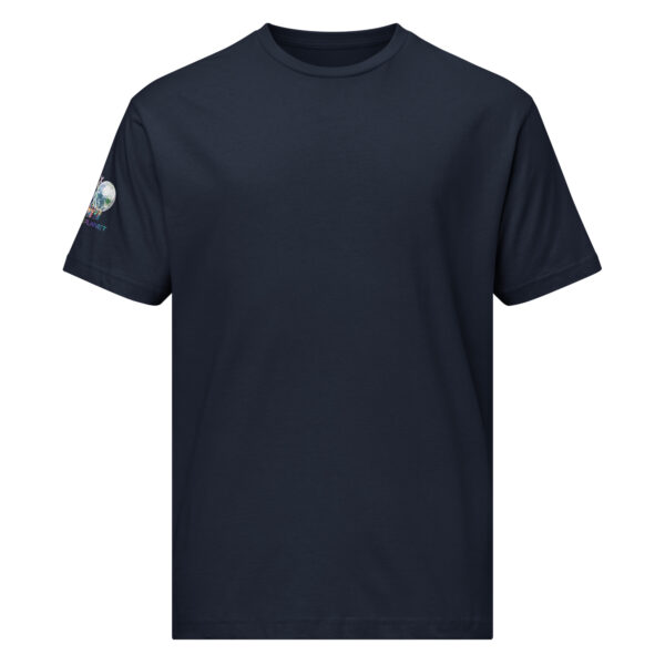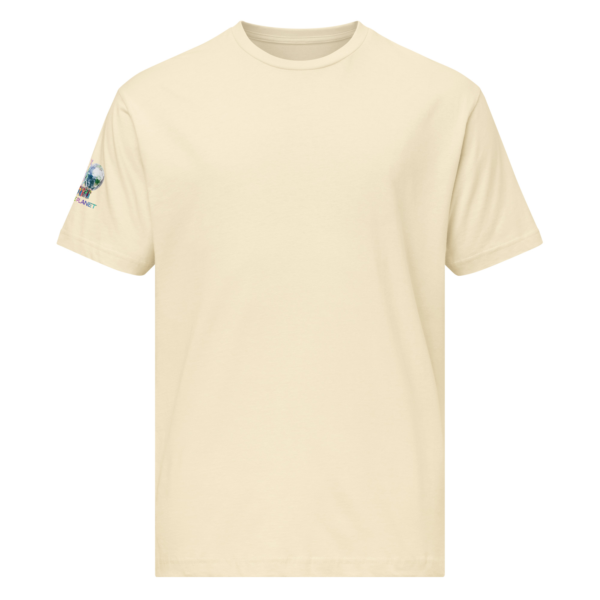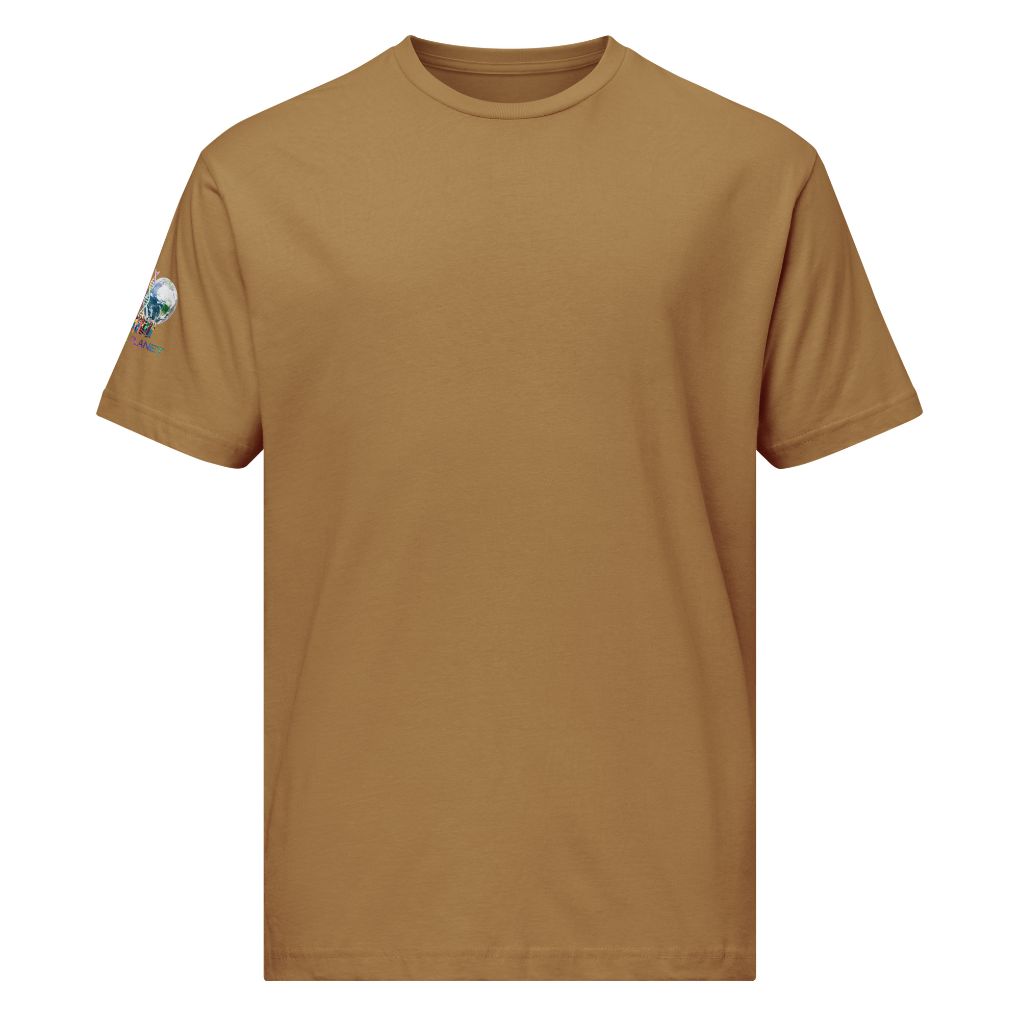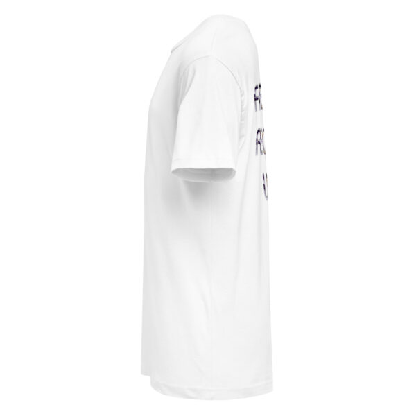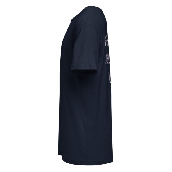 A stylish cotton shirt featuring the slogan “Freedom Requires Unity” printed in golden abstract purple on the back with a Save the Planet logo on the right sleeve. The shirt is available in various colors and is a good conversation starter.